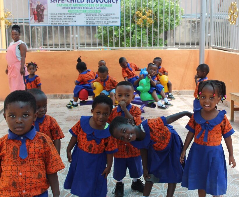 Safe-Child Advocacy operates a Day Care Centre located at Abinkyi market in Kumasi. The Day Care Centre is for babies born and raised on the street. These are babies of young mothers who get impregnated on the street mostly from exploitative relationships. Some of the street mothers are married women who flee hardships from their rural homes into Kumasi to work to sustain themselves and their families. These women ordinarily strap their babies at their back and carry loads on the heads around the crowded market.